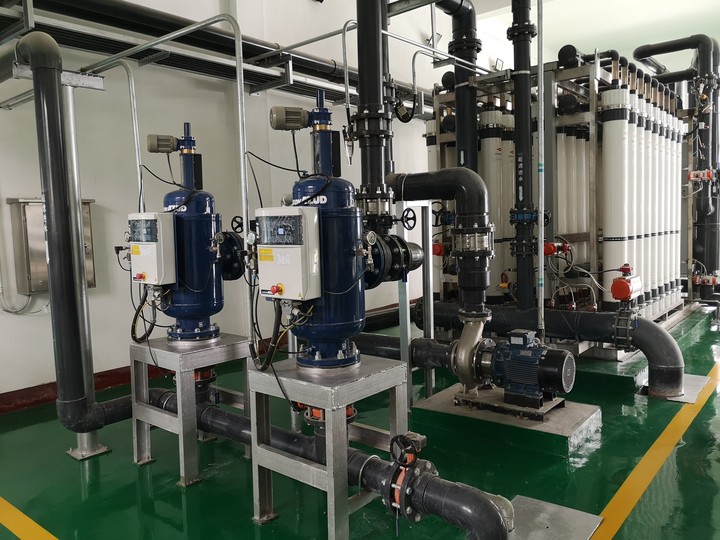 本项目为矿井水全盐量治理工程,处理水量为2000m3/d,是我公司在兖州煤业矿井水处理中的一个样板工程。该项目采用“曝气+除铁过滤器+超滤+反渗透” 的主工艺。产水主要用于洗浴,剩余部分与矿井中水混合排放,浓水部分用于选煤中心洗选补水,部分用于皮带机道降尘洒水、煤泥干燥车间降尘及煤厂降尘洒水。